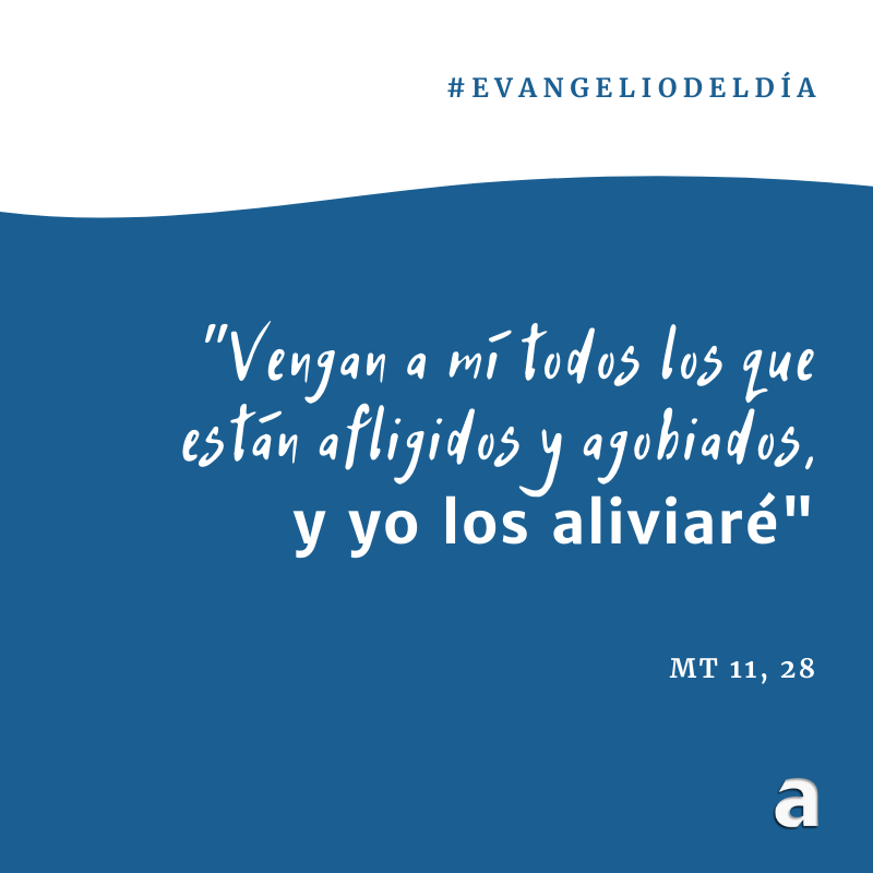 Jesús tomó la palabra y dijo: "Vengan a mí todos los que están afligidos y agobiados, y yo los aliviaré. Carguen sobre ustedes mi yugo y aprendan de mí, porque soy paciente y humilde de corazón, y así encontrarán alivio. Porque mi yugo es suave y mi carga liviana."