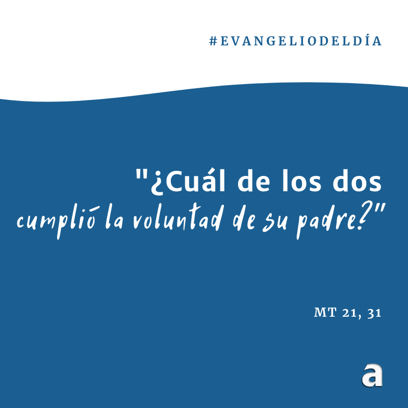 Jesús dijo a los sumos sacerdotes y a los ancianos del pueblo: "¿Qué les parece? Un hombre tenía dos hijos y, dirigiéndose al primero, le dijo: 'Hijo, quiero que hoy vayas a trabajar a mi viña'. El respondió: 'No quiero'. Pero después se arrepintió y fue. Dirigiéndose al segundo, le dijo lo mismo y este le respondió: 'Voy, Señor', pero no fue. ¿Cuál de los dos cumplió la voluntad de su padre?". "El primero", le respondieron. Jesús les dijo: "Les aseguro que los publicanos y las prostitutas llegan antes que ustedes al Reino de Dios. En efecto, Juan vino a ustedes por el camino de la justicia y no creyeron en él; en cambio, los publicanos y las prostitutas creyeron en él. Pero ustedes, ni siquiera al ver este ejemplo, se han arrepentido ni han creído en él".