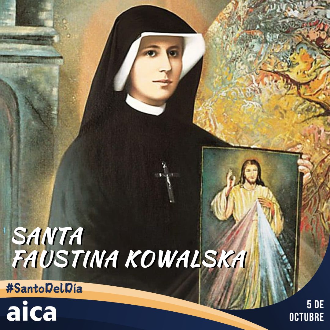 Nació en Polonia en agosto de 1905 y falleció el 5 de octubre de 1938. A los 20 años entró en la congregación de la Madre de Dios de la Misericordia en Cracovia. De intensa vida mística, en 1931 tuvo una visión de Jesús Misericordioso cuya imagen, en junio de 1934 hace pintar en un cuadro. Juan Pablo II, siendo un joven obrero, iba a rezar al convento de Cracovia donde ella vivió y donde se conserva el cuadro que recoge la visión. La beatificó el 18 de abril de 1993 y la canonizó el 30 de abril de 2000, siendo la primera santa canonizada en el tercer milenio. Juan Pablo II dedicó su segunda encíclica (Dives in Misericordia, 1980) a la devoción que difundió Santa Faustina y estableció que se celebre cada año la fiesta de la Divina Misericordia en el primer domingo después de Pascua. En la visión, Jesús le decía a sor Faustina que quería que su imagen con la mano alzada para bendecir fuera venerada en el mundo entero.