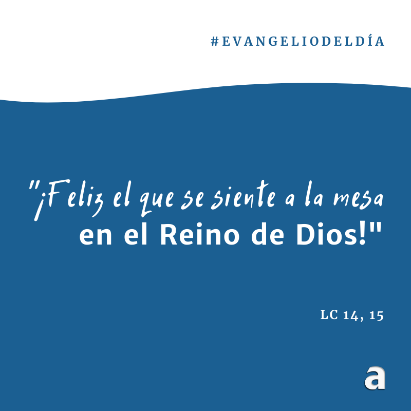 En aquel tiempo: Uno de los invitados le dijo: "¡Feliz el que se siente a la mesa en el Reino de Dios!". Jesús le respondió: "Un hombre preparó un gran banquete y convidó a mucha gente. A la hora de cenar, mandó a su sirviente que dijera a los invitados: 'Vengan, todo está preparado'. Pero todos, sin excepción, empezaron a excusarse. El primero le dijo: 'Acabo de comprar un campo y tengo que ir a verlo. Te ruego me disculpes'. El segundo dijo: 'He comprado cinco yuntas de bueyes y voy a probarlos. Te ruego me disculpes'. Y un tercero respondió: 'Acabo de casarme y por esa razón no puedo ir'. A su regreso, el sirviente contó todo esto al dueño de casa, y este, irritado, le dijo: 'Recorre en seguida las plazas y las calles de la ciudad, y trae aquí a los pobres, a los lisiados, a los ciegos y a los paralíticos'. Volvió el sirviente y dijo: 'Señor, tus órdenes se han cumplido y aún sobra lugar'. El señor le respondió: 'Ve a los caminos y a lo largo de los cercos, e insiste a la gente para que entre, de manera que se llene mi casa. Porque les aseguro que ninguno de los que antes fueron invitados ha de probar mi cena'".